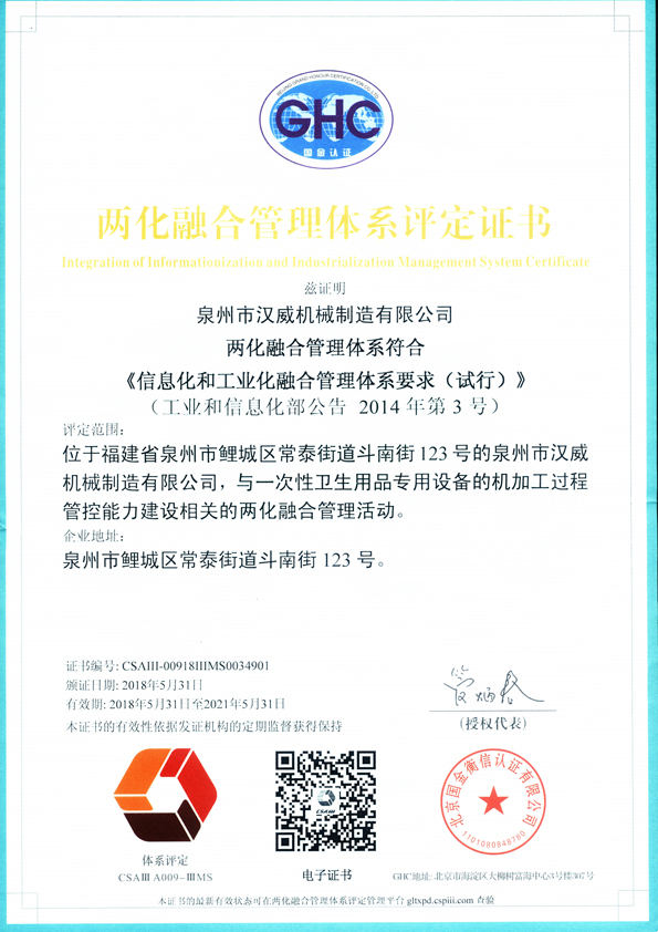 公司正式通過“兩化融合管理體系”評定